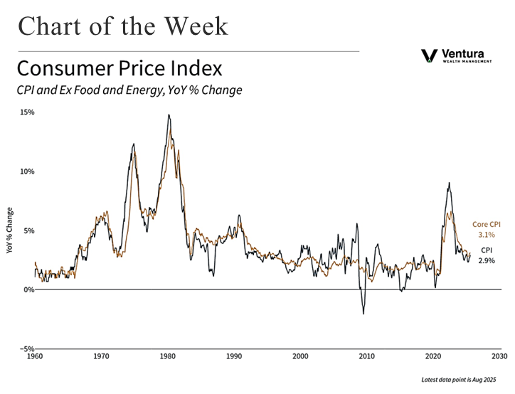 Last week, both the PPI and CPI inflation reports were released. On a positive note, the PPI came in below expectations, declining by 0.1% for the month and notching a year-over-year rate of 2.6%.7 Meanwhile, the CPI figures (see chart) was in line with analyst forecasts.